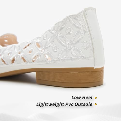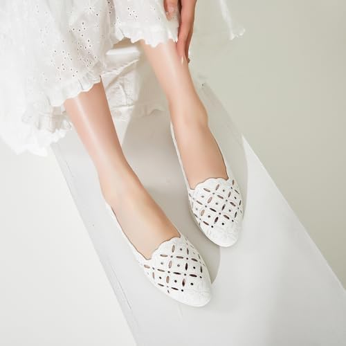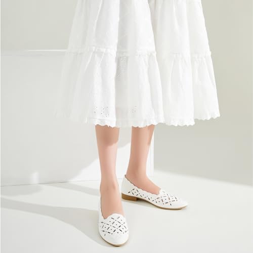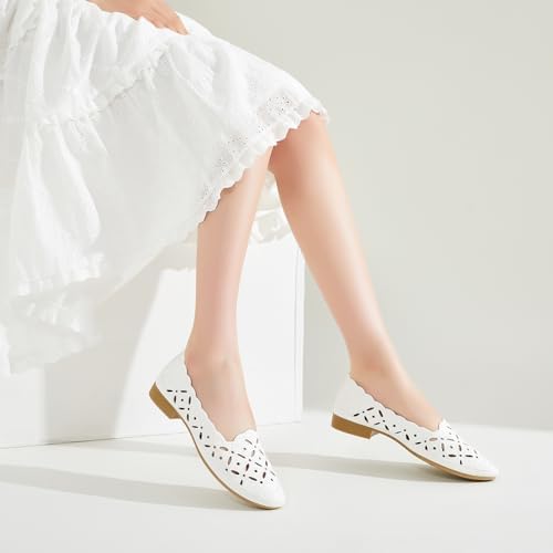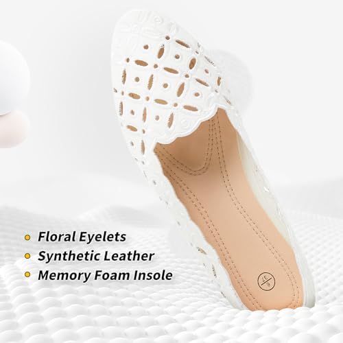 BABUDOG Womens Flats,Black and White Dress Flats with Flower Eyelets,Breathable Ballet Flats