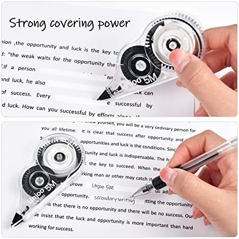 Unjoo White Correction Tape, Easy To Use Applicator for Instant Corrections Wrong Writing At Any Time, For school, Office (12pack, 5M\/196" x 0.2", Black)
