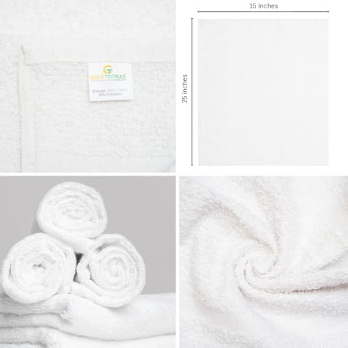 GOLD TEXTILES White Hand Towels 24 Pack (15x25 Inches) Cotton Blend Salon Towels Thin, Light Weight, Quick Drying Spa Towels