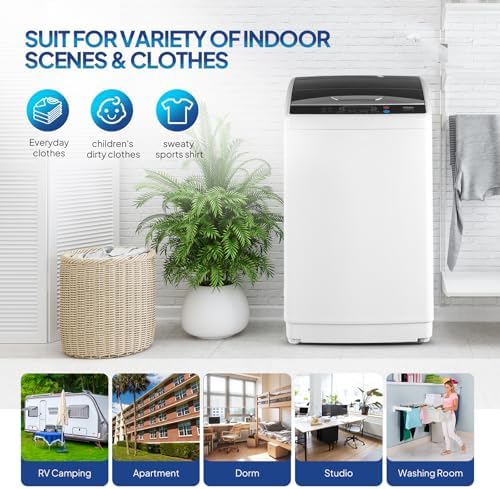 ROVSUN 25LBS Portable Washing Machine, Full-Automatic Electric Laundry Machine with Stainless Steel Drum, 110V Compact Washer, Washer and Spin Dryer Combo with Drain Pump for Apartment, Dorm, Home