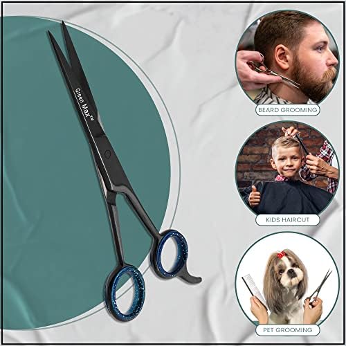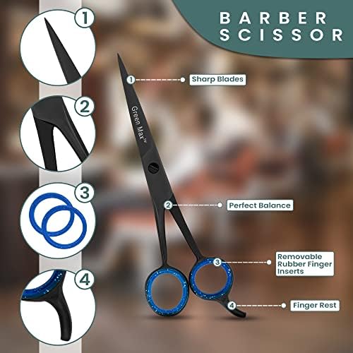 Green Max Hair Scissors, Hair Cutting Barber Scissors, Sharp Blades, Razor Edge, Stainless Steel Salon Hairdressing Sharp Scissors for Men Women -6.5" (Black)