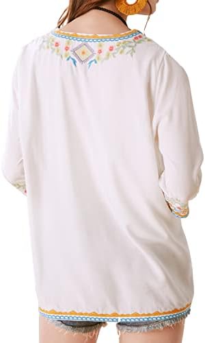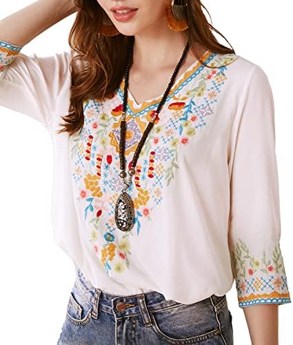 Higustar Mexican Tops for Women Embroidered Shirts Bohemian Hippie Clothes Tunic Fiesta Plus Size Boho Peasant Blouses
