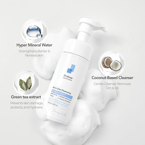 Dr.Deep All in One Cleansing - Korean Foaming Facial Cleanser for Bumpy Skin & Blackheads, Makeup Removing Cleanser & Gentle Face Wash for All Skin Types - 5.07 fl. oz