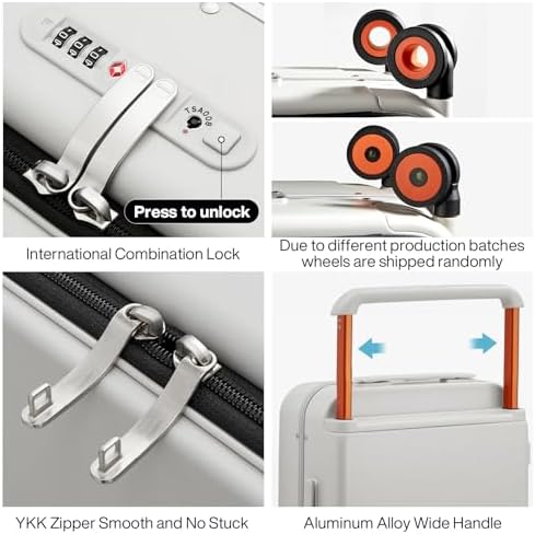 mixi Carry On Luggage Wide Handle Luxury Design Rolling Travel Suitcase PC Hardside with Aluminum Frame Hollow Spinner Wheels, with Cover, 20 inch, Smoke White