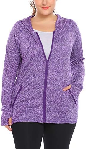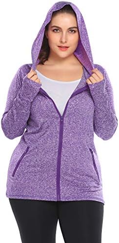 IN'VOLAND Womens Running Jackets Plus Size Lightweight Full Zip Up Track Workout Yoga Athletic Hooded Hoodie with Pockets
