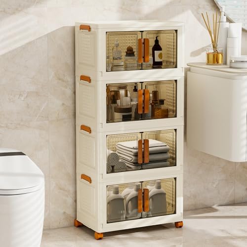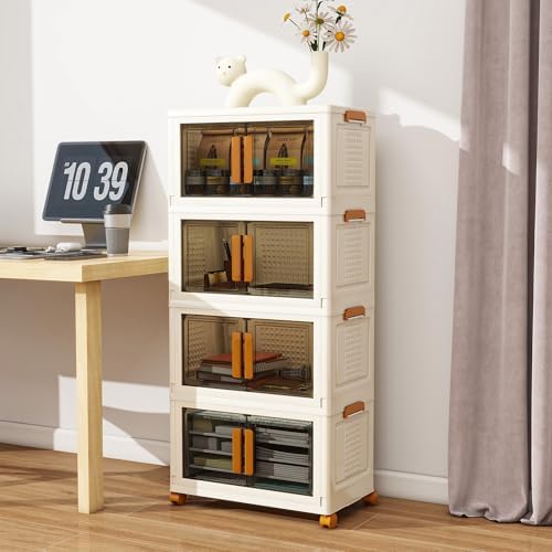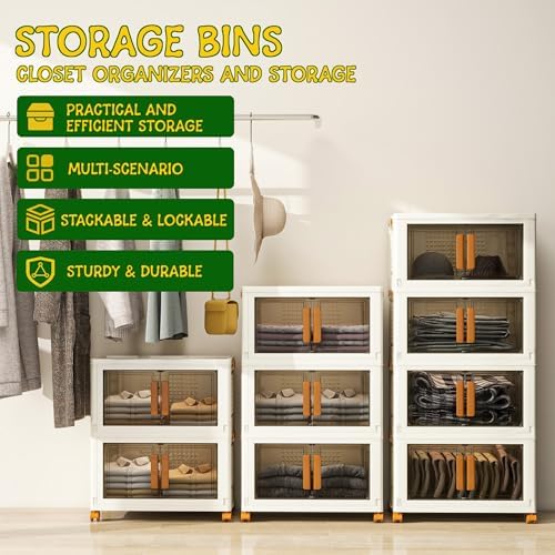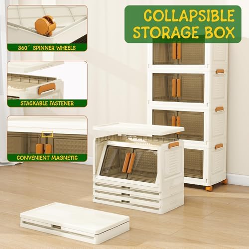 Edospaen 4 Tier Stackable Plastic Storage Bins with 1 Lid 45 QT\/Tier, Collapsible Plastic Box Storage Bin with Wheels, Home Containers Boxes Closet Organizers for Living Room, Office, Dorm