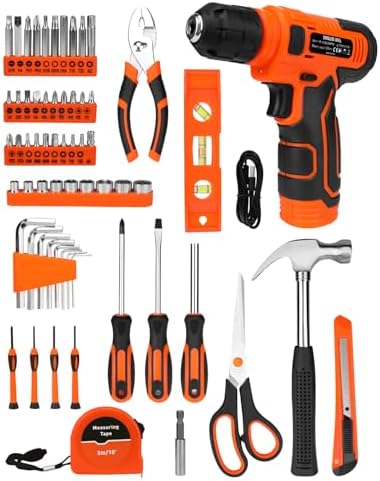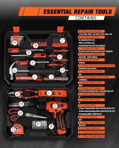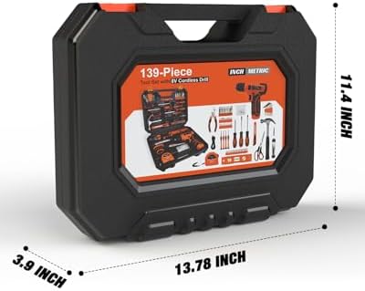 139-Piece Tool Set - Tool Kit with 8V Cordless Drill Driver in ToolBox Storage Case, General Household Drill Set for Home Repairs, Handyman, DIY Projects