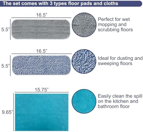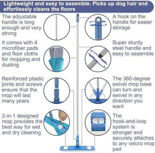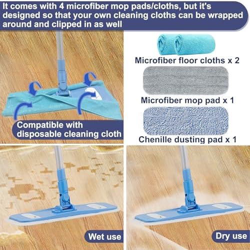 Microfiber Mops for Floor Cleaning, Multi Surface Floor Cleaner with 2 Microfiber Dry Wet Mop Pads + 2 Dusting Clothes for Sweeping and Mopping