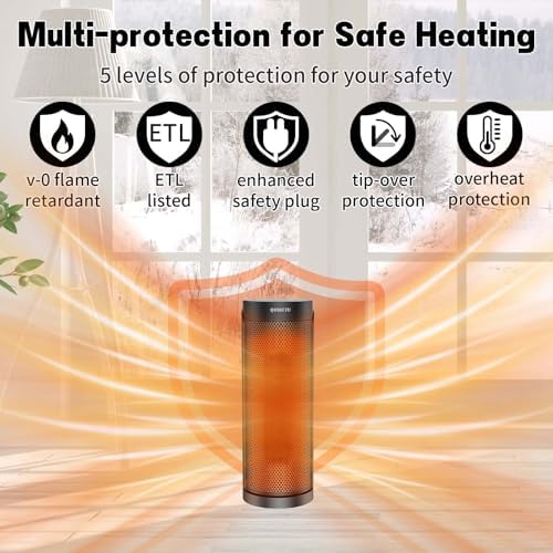 Portable Space Heater for Indoor Use with Remote - QOWETU 70° Oscillating Electric Heater, 17 Inchs, 12H Timer, 1500W Quiet PTC Ceramic Heating with Thermostat, Fast Safety Heat for Home, Bedroom