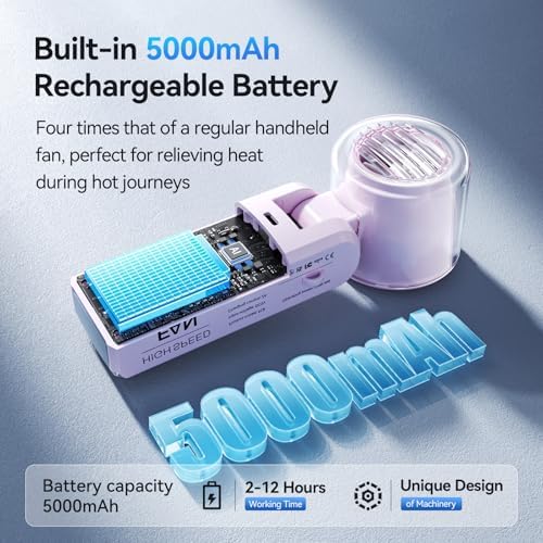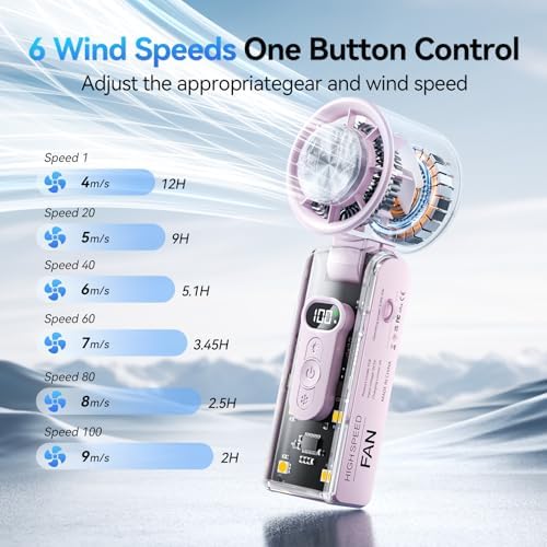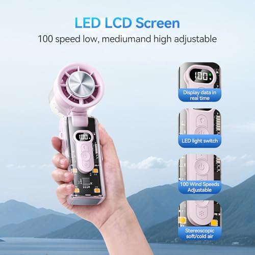 Portable Handheld Fan with Ice Cooling, 2025 Upgraded Foldable Mini Personal Fan, 3-IN-1 Hand\/Desk\/Neck Use, 3 Adjustable Led Lighting,100 Speeds, 5000mAh-Perfect Summer Gift for Travel & Outdoo