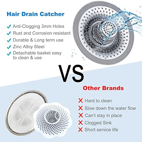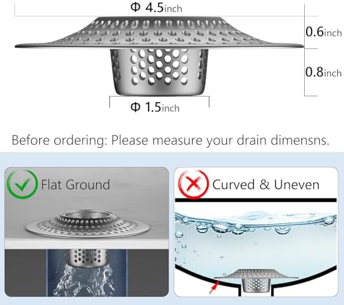 MFTEK Drain Hair Catcher Tub Drain Protector, Stainless Steel Bathtub Shower Drain Hair Stopper Strainer Trap for Shower Bathroom Sink to Catch Hair