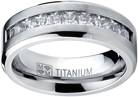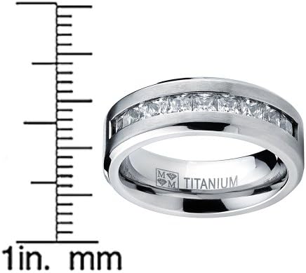 Metal Masters Titanium Men's Wedding Band Engagement Ring with 9 Large Princess Cut Cubic Zirconia