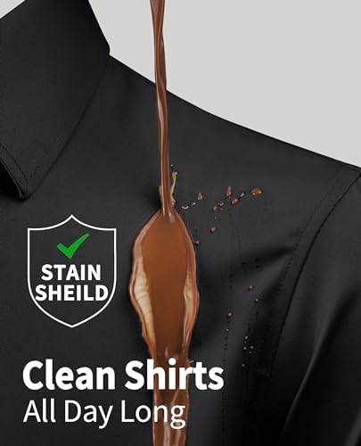 DEMEANOR Stain Sheild Dress Shirts for Men Dress Shirts Slim Fit Button Down Long Sleeve Dress Shirt Formal Business