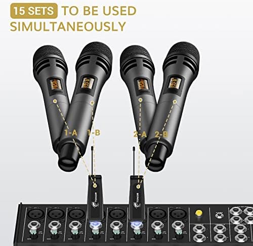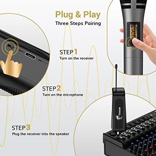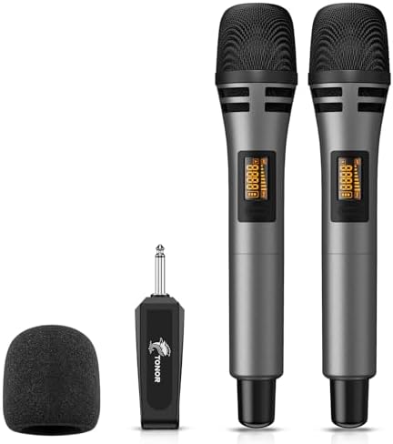 TONOR Wireless Microphones, UHF Dual Karaoke Microphone System, Microfonos Inalambricos with Rechargeable Receiver, Cordless Dynamic Mic Micro Set for Singing, Wedding, DJ, Party, Speech TW320 Grey