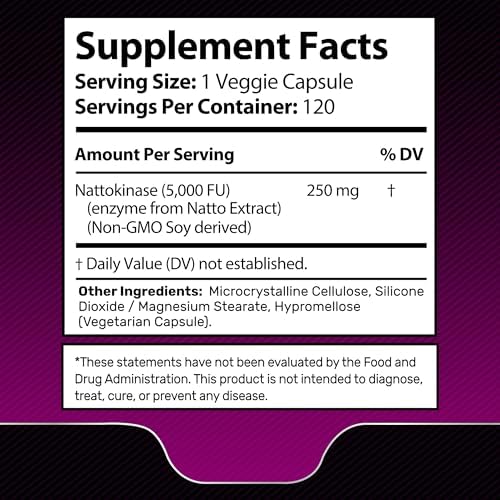 Nattokinase Supplement Capsules 5000 FU, Third-Party Tested Nattokinase \u2013 Enzymes from Japanese Natto \u2013 Daily Wellness Support \u2013 120 Count