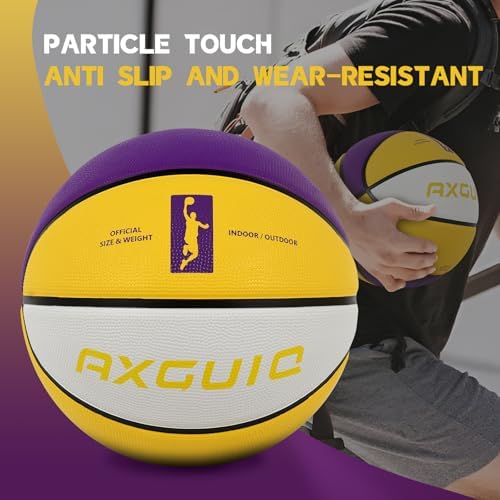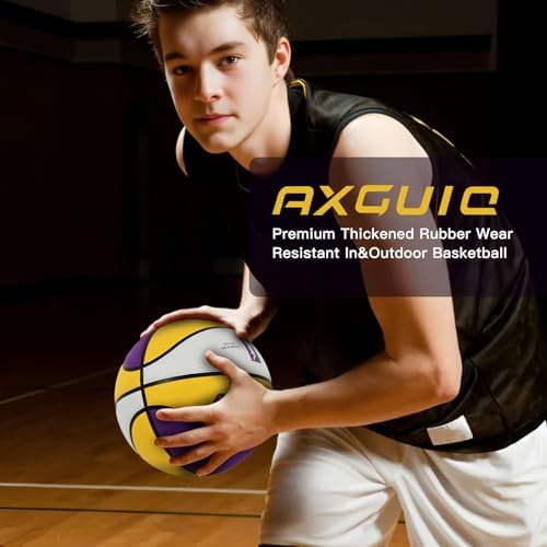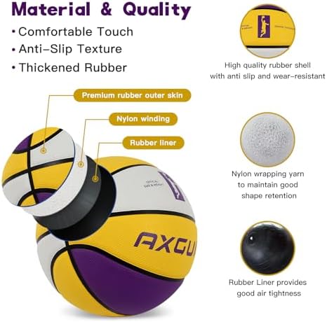 AXGUIQ Kids Youth Adult Size 3\/4\/5\/6\/7 Basketball Thickened Rubber Outdoor Colorful Basketball 22\/25.5\/27.5\/28.5\/29.5" for Wear Resistant Play Game Gifts (Deflated)