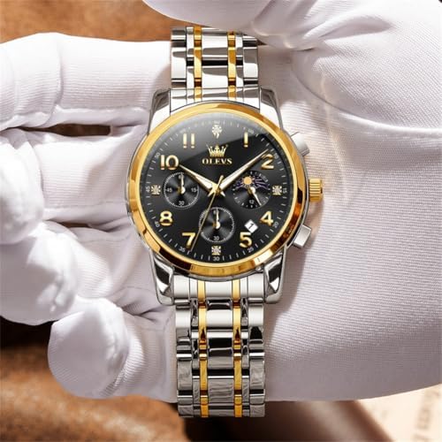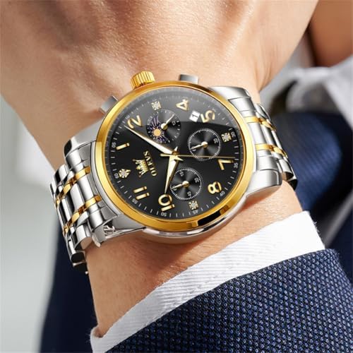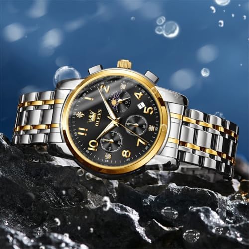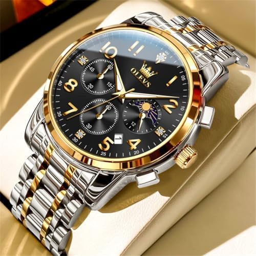 OLEVS Watch Men Luxury Classic Big Face Men's Wrist Watch Fancy Metal Stainless Steel Waterproof Mens Watches Everyday Easy Reader Date Moon Phase Analog Quartz Chronograph Watches Reloj para Homb