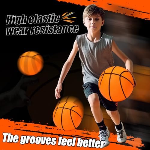 JellyArch 2 Pcs Silent Basketball 9 Inch Indoor Soft Foam Basketball Official Size 7 Sports Ball Elastic Inside for Youth Kids Dribbling Training Practice Ball