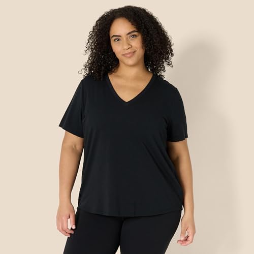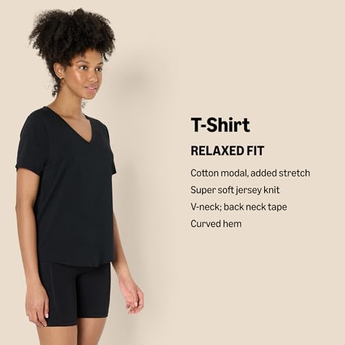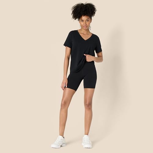 Amazon Essentials Women's Active Soft Cotton Relaxed Fit V-Neck Short Sleeve Lightweight Yoga Workout T-Shirt