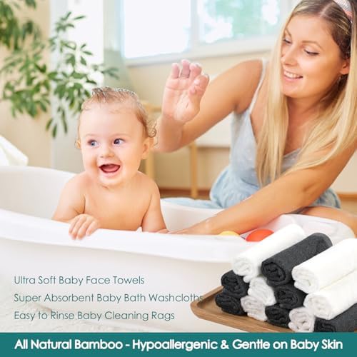 Baby Washcloths 6 Pack, 10x10 inch Heavenly Soft Small White Wash Cloths for Face and Body, Gentle & Safe Face Towel on Sensitive Skin, Baby Essentials Bath Shower Gifts for Newborn Kid Toddler Ch