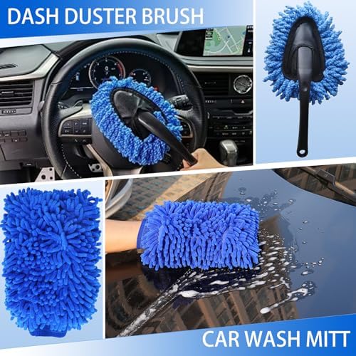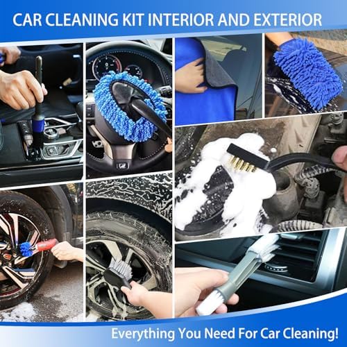 18Pcs Car Cleaning Kit Interior and Exterior Detailing Kit, Car Detailing Set With Drill Brush Cleaner Wash Mitt Tire Brush Sponge Towels Car Wash Cleaning Tools Set For Cleaning Dashboard, Air Vent