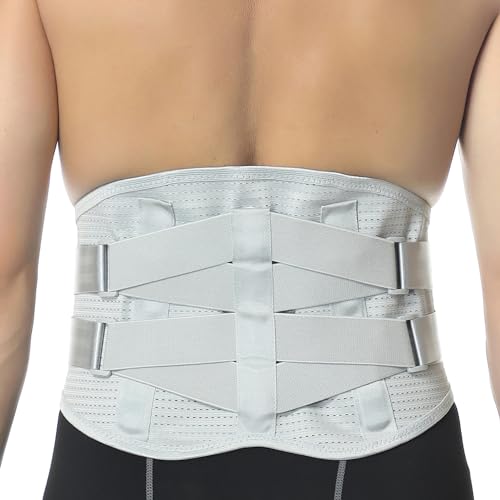 NeoTech Care Back Support Belt - Breathable & Adjustable Lower Back Brace - Double Pull Compression Straps (Grey, Size XXL)