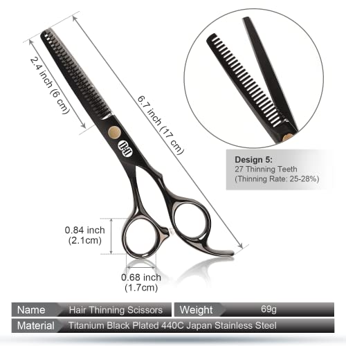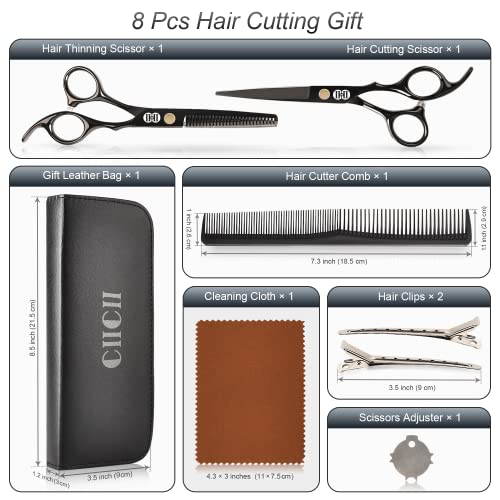 CIICII Hair Cutting Scissors Shears Kit, Professional Hairdressing Scissors Set (Hair Beard Trimming Shaping Grooming Thinning Shears) for Men Women Hairdresser Home Salon Barber Haircut Kit (Black)