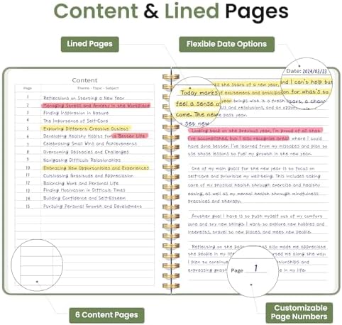 Lined Spiral Journal Notebook for Women & Men, 140 Pages, College Ruled Hardcover Notebook for Work & Note Taking, Journals for Writing, A5(6"x8") - Green