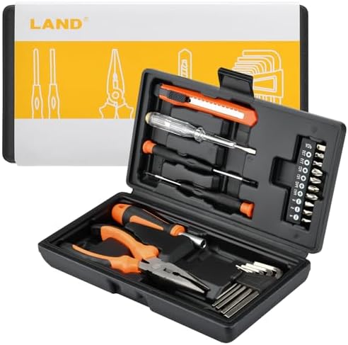 LAND 22-Piece Small Tool Kit with Toolbox - Essential Household Tool Set for Home Repair, DIY Projects, Garage & College Dorm, Includes Pliers, Screwdrivers & Portable Storage Case