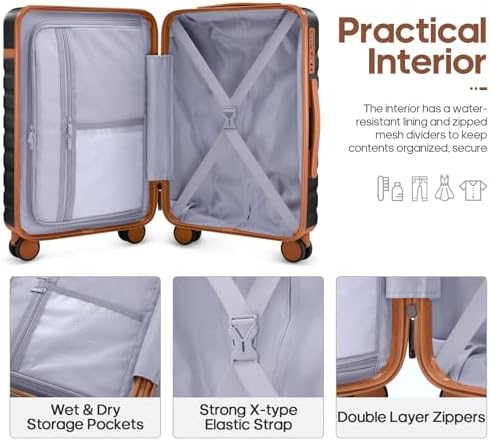 UKEIN 行李箱套装 3 件套,随身行李 50.8 厘米带万向轮,PC 硬壳行李箱套装带 TSA 锁,耐用随身行李箱,带旅行背包男士, 黑色, 行李箱套装,带万向轮