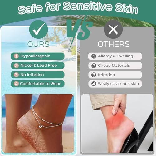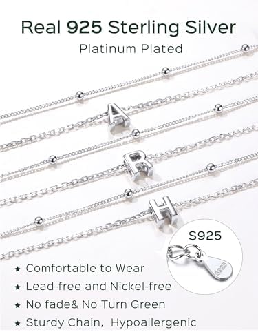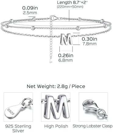 ChicSilver Ankle Bracelets for Women Waterproof, 925 Sterling Silver Initial Anklets for Women, Adjustable Dainty Layered Anklet Beach Jewelry for Women Mom Wife Friend