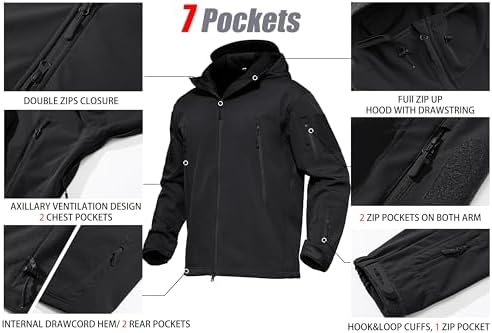 MAGCOMSEN Men's Tactical Jacket 7 Pockets Performance Fleece Lined Water Resistant Soft Shell Winter Coats