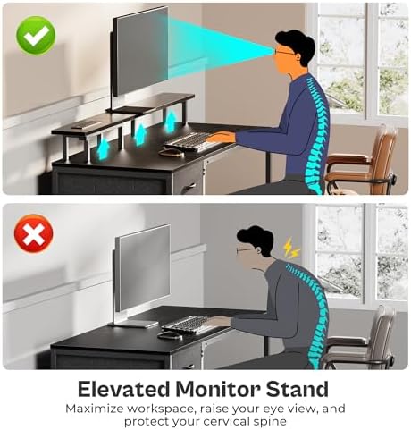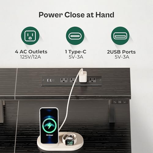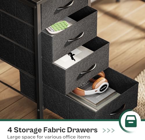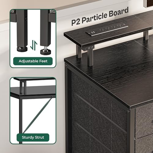 Huuger 47 Inch Computer Desk with Power Outlets and LED Lights, Gaming Desk with 4 Drawers, Office Desk with Monitor Stand, Study Work Home Office, Small Spaces, Black