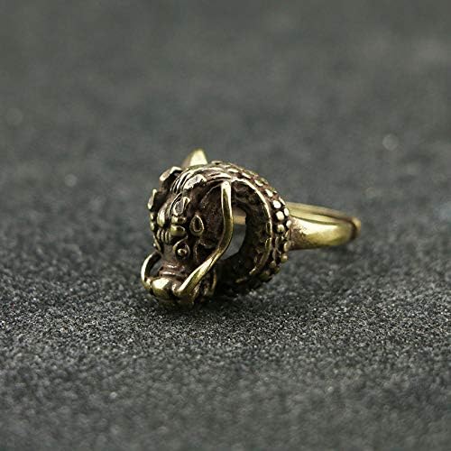 QianKao Retro Brass Dragon Ring for Men, Powerful and Trendy, Pure Copper Craftsmanship, Retro and Antique Zodiac Dragon Ring