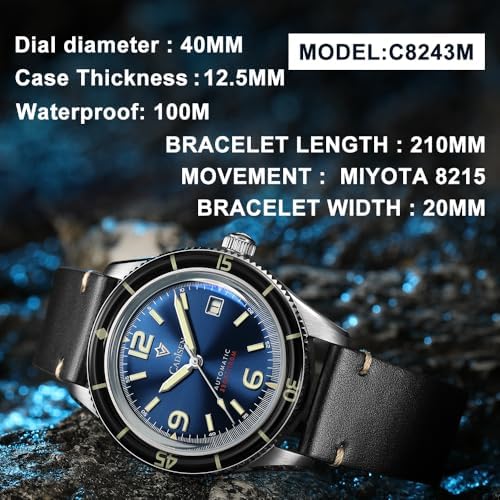 CADISEN Men's Automatic Watch Leather Strap Casual Homage