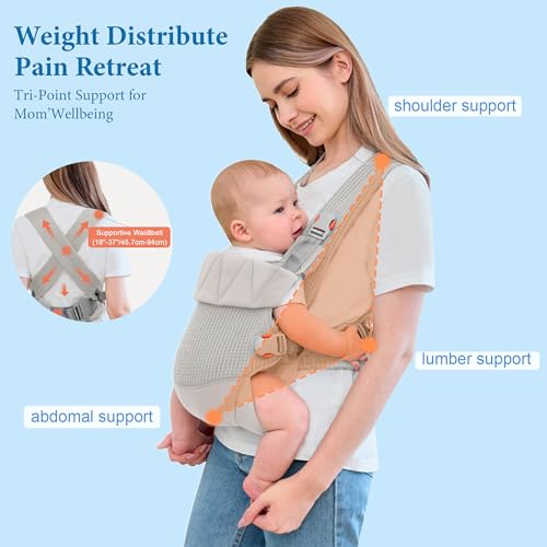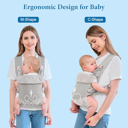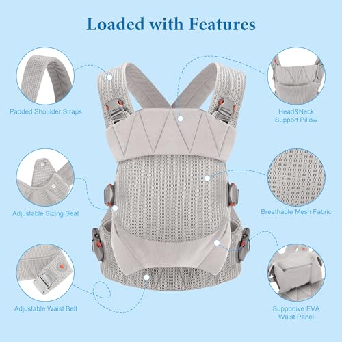 Huifen Breathable Mesh Baby Carrier, Ergonomic Design Baby Wraps Carrier with Head Support and Adjustable Sling for Newborns to Toddlers, Infant Carrier Baby Gift,for Babies 7 to 45 lbs (Gray)