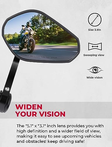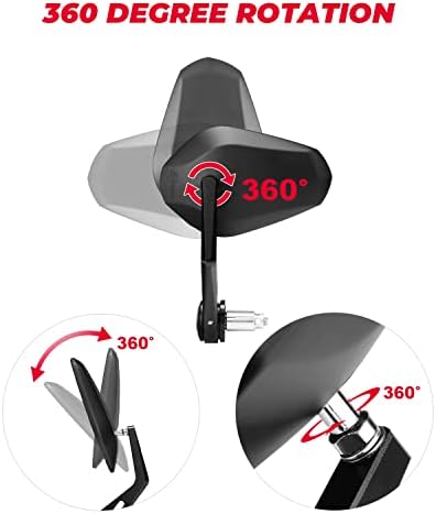 KEMIMOTO Motorcycle Bar End Mirrors, 360 Degrees Ball-Type Adjustment, Universal Fit for 7\/8\u201D Handlebars, Billet Aluminum Handlebar Mirrors Compatible with Most Scooters, ATV