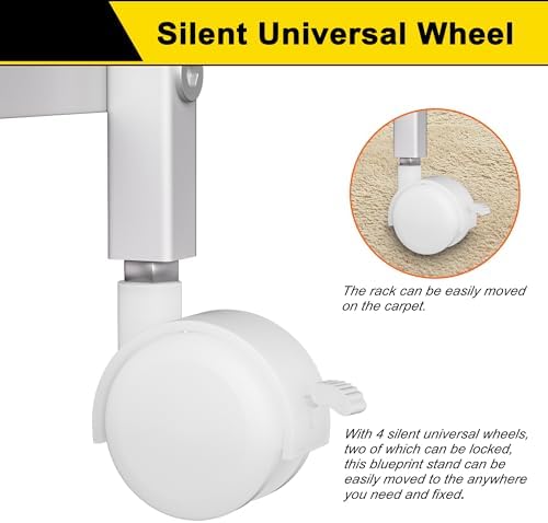 GIOTORENT Blueprint Storage Rack, Holder with Wheels, Map\/Poster\/Architectural Plan Storage, 12 Slots, 2 Brakes, Silent Wheels for Home, Office, School (White)