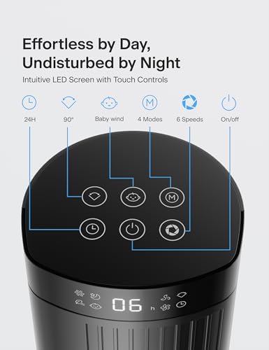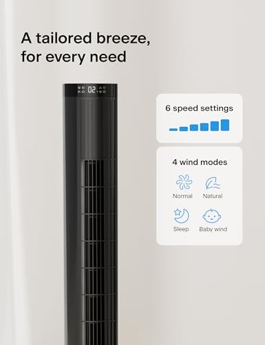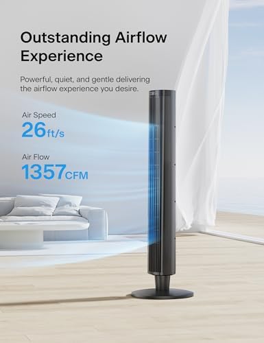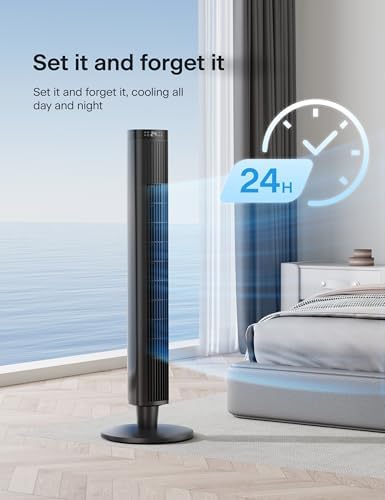 PELONIS 42-Inch Tower Fan for Bedroom \u2013 26ft\/s, 90° Oscillating Tower Fan with Remote Control, LED Display \u2013 Floor Fan for Indoors with 6 Speeds, 4 Modes and 24-Hour Timer \u2013 ETL Certif