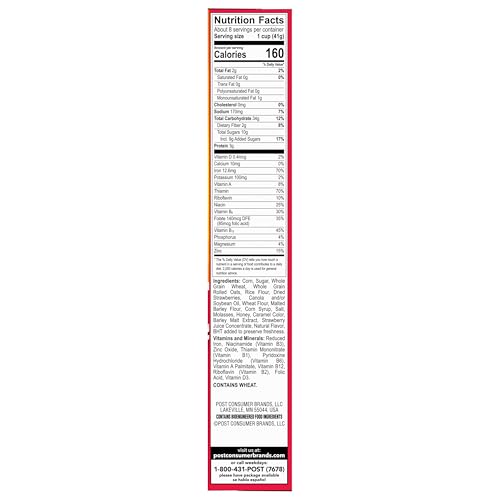 Honey Bunches of Oats Strawberry, Heart Healthy, Low Fat, made with Whole Grain Cereal, 11 Ounce