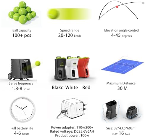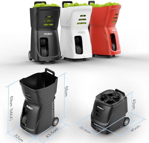 PT-Smart Tennis Ball Machine Automatic Portable Tennis Ball Launcher\/Thrower for All Level Players Training and Practice - Pre-Programmed and Custom Drills, Complete with App\/Remote Control.
