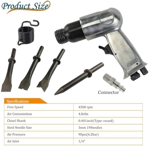 YuYBrightmi 150mm air hammer kit 4-chisels, 4500 BPM, pneumatic hammer shovel tool