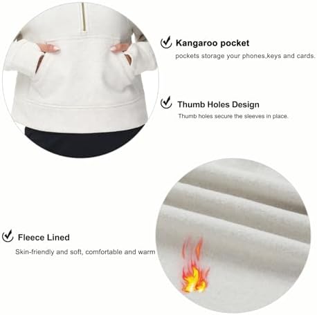 THE GYM PEOPLE Women's Half Zipper Hooded Wool Stand up Collar with Exposed Umbilical Sweatshirt with Pocket Thumbhole