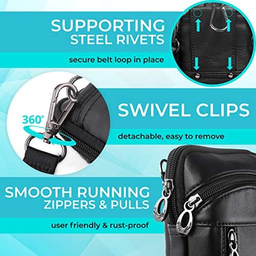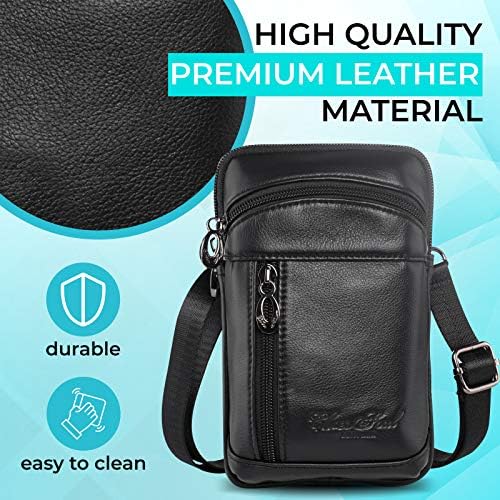 Hengwin Small Leather Crossbody Shoulder Bag Men Belt Clip Phone Holster Case Belt Loop Pouch Waist Bag Pack Fit for iPhone 16 15 14 13 Pro Max 8 Plus Galaxy Note 9 8 S24\/S23 Ultra S9\/S8 Plus (Black