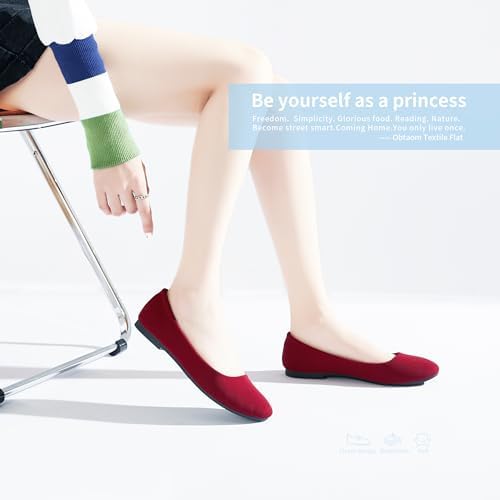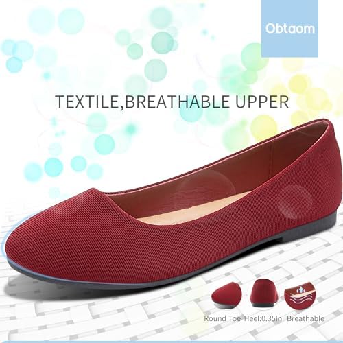 Obtaom Round Toe Women Flat Shoes Slip on Girls Dress Black Ballet Flats
