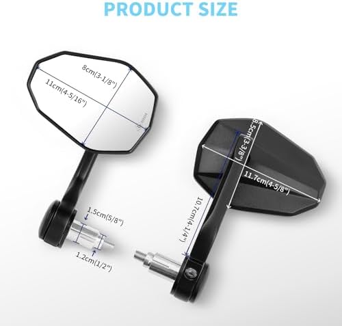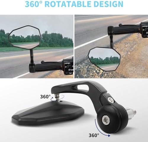 DREAMIZER Aluminum Motorcycle Handle Mount Bar End Mirror, Rearview End Bar Mirrors Universal 7\/8" or 1" Handlebar, Compatible with Most Motorcycles, E-bike, Scooters