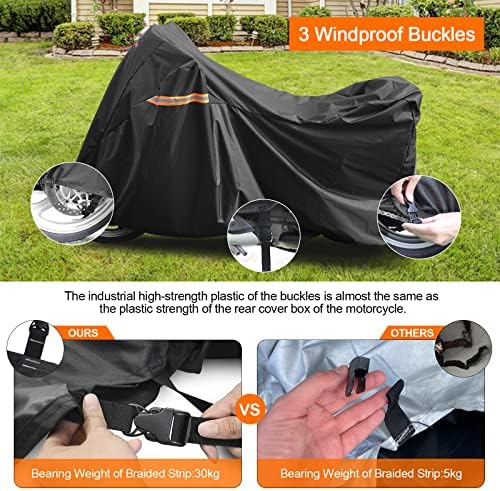 Motorcycle Cover All Season, Universal Waterproof Weather Sun Outdoor Protection Motorbike Cover, Scooter Shelter, Heavy-Duty Motorcycles Vehicle Cover, Fits Up to 96" Motors