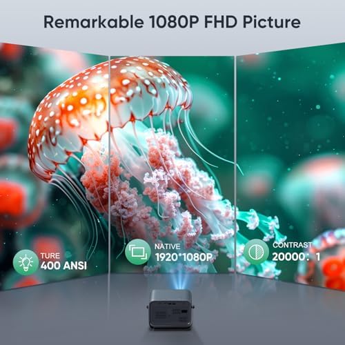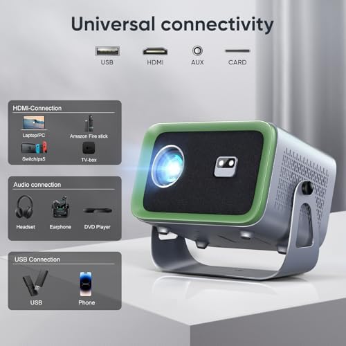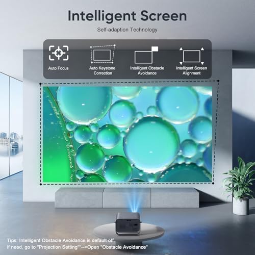 Auto Focus4K Projector with WiFi and Bluetooth, 360° Rotatable Movie Projector with Auto Keystone & Zoom, Outdoor Projector for Phone\/PC\/TV Stick\/DVD\/HDMI\/USB