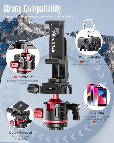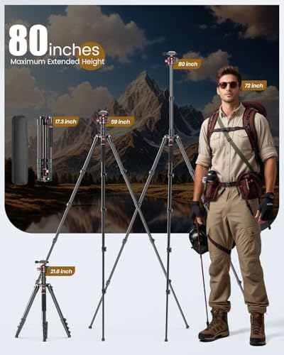 CAMBOFOTO 80\u201C DSLR-Camera-Tripod, Photography 360 Ball Head Professional Aluminum Tripod & Monopod with Carry Bag Compatible with Canon Nikon Binoculars Laser Telescope (Weight 3.35 Lbs, 15Lb