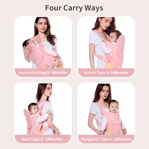 KIYUMI Baby Sling Carrier Portable Newborn Toddler,Child Infant Baby Carrier-Child Carrier Sling,Lightweight & Breathabl Hip 4 in 1 Carry,Pink